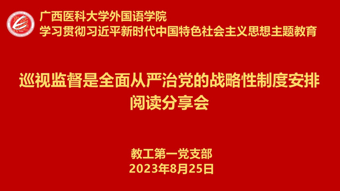 晁丽同志领学《论党的自我革命》之“巡视监督是全面从严治党的战略性制度安排”章节。晁丽同志分别从“什么是巡视监督、巡视监督的发展历程和巡视监督的重要作用”三个方面为老师们做了清晰详细的讲解,并分享了自己的学习心得。晁丽同志提到,巡视监督是党章赋予的重要职责,是党内监督的战略性制度安排,是中国共产党永葆生命力的重要创举。巡视监督是上级党组织对下级党组织履行党的领导职能责任的政治监督,目的是坚持好、巩固好、维护好党的领导。巡视监督要做好四个坚持:坚持战略思维,把握巡视鲜明的政治性;坚持历史思维,把握巡视鲜明的人民性;坚持辩证思维,把握巡视鲜明的时代性;坚持系统思维,把握巡视鲜明的综合性。