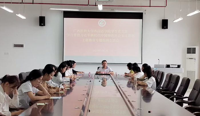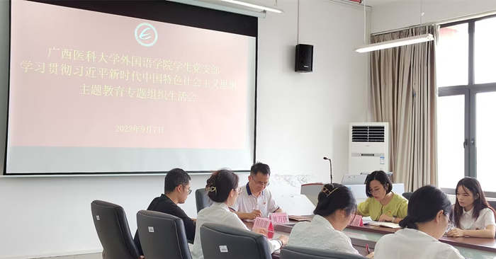 2023年9月7日中午,成人抖音 学生党支部于博雅楼603会议室召开学习贯彻习近平新时代中国特色社会主义思想主题教育专题组织生活会。学院党总支黄万获副书记到会指导。会议由学生党支部书记郭晶晶主持,学生党支部党员参加会议。